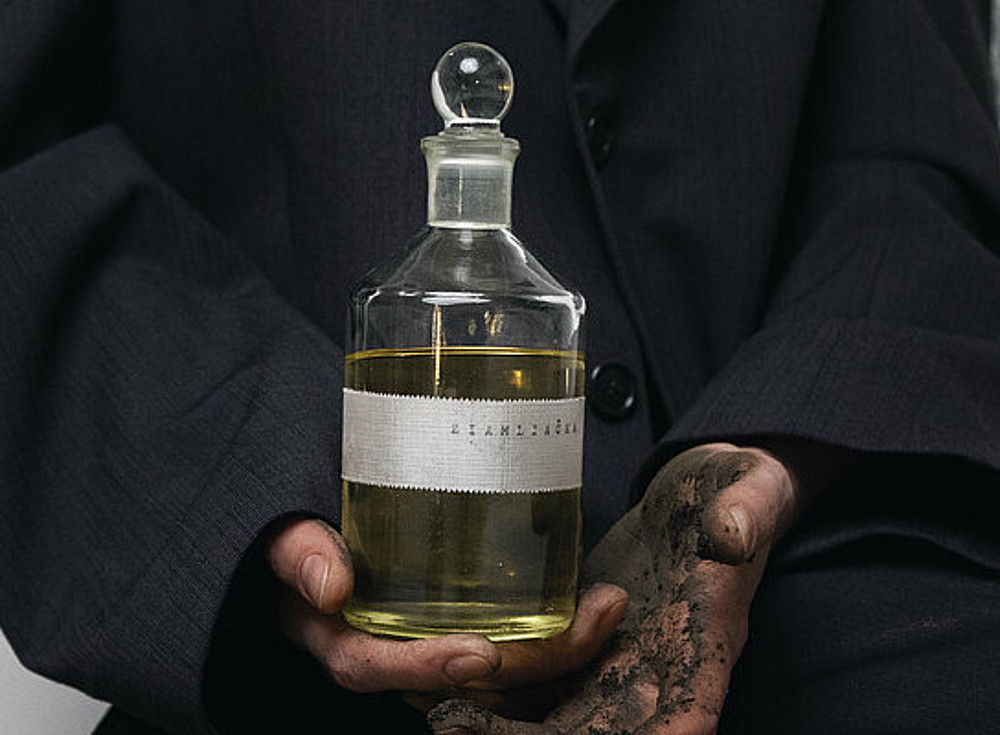 Ziamliačka – Belarusian for ‘a woman who comes from the same soil’ is Cemra's artistic attempt to preserve an unattainable homeland as an olfactory archive. The soil, which the artist presents piled up in the installation at the Needle of Kunsthaus Graz and as a fragrance essence sealed in glass, is more than just matter: it becomes a transnational, political body and a preservative memory that resists erasure.